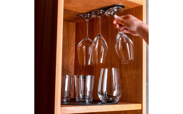 - Platzsparendes und sicheres Verstauen der silwy Magnet-Gläser (kopfüber, schräg, vertikal)