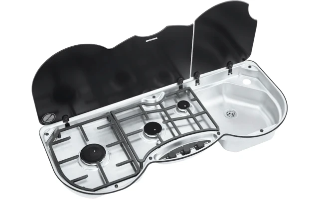 Die Serie 353 von Thetford kombiniert erfolgreich drei Brenner und ein Spülbecken. Die Kombinationsserie 353 verleiht der Freizeitküche einen Anblick, bei dem man sich wie zu Hause fühlt. Die beiden Teile des Glasdeckels lassen sich separat schließen und bieten somit zusätzliche Arbeitsfläche oder Platz für das Aufräumen. Das Kochfeld bietet zudem Platz für größere Pfannen – ganz wie zu Hause. Eine einhändig bedienbare Elektrozündung erleichtert das Einschalten der Brenner und die gesamte Kombination ist robust und einfach zu reinigen.